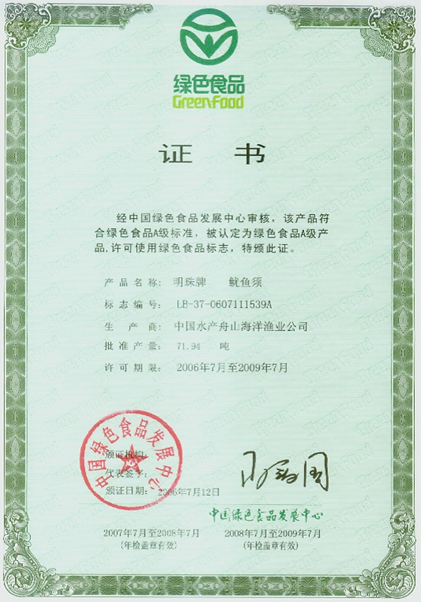 綠色產品證書-魷魚須